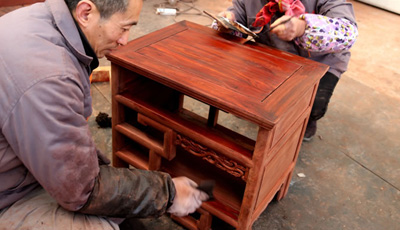 流程四打磨工序 在古代沒有砂紙,匠人使用銼草打磨家具。銼草,又叫節(jié)節(jié)草、木賊、擦桌草。這種草草身帶毛刺,秋天收割,晾干存好備用。使用時(shí)用溫水浸泡就可以恢復(fù)直挺,毛刺完全張開,用以家具部件表面打磨,尤其是對雕刻紋飾、線條的打磨。既保證了各部件的光滑、亮度,又不傷雕刻紋飾...